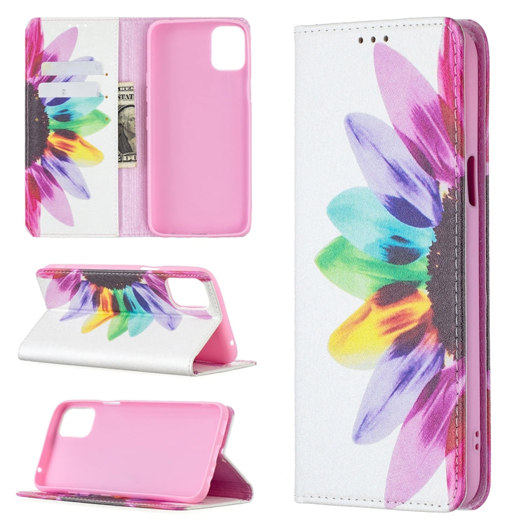 Funda de Cuero PU para LG K42 con Patrón Invisible, Soporte, Tragamonedas y Billetera (Flor de Sol)