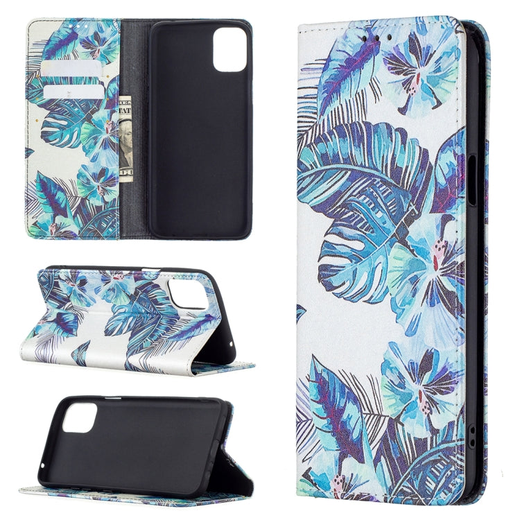 Funda de Cuero PU para LG K42 con Patrón Invisible, Soporte y Ranuras para Tarjetas (Hojas Azules)