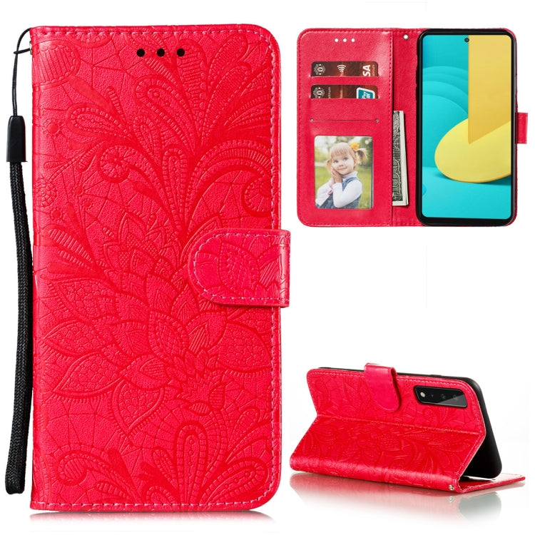 Funda de Cuero PU para LG K42 con Patrón Invisible, Soporte, Tragamonedas y Billetera (Hojas Rojas)