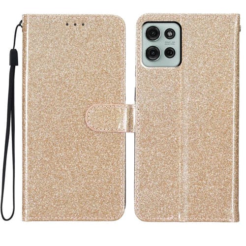 Funda de Cuero con Tapa y Purpurina para Motorola Moto G75 5G (Dorada)