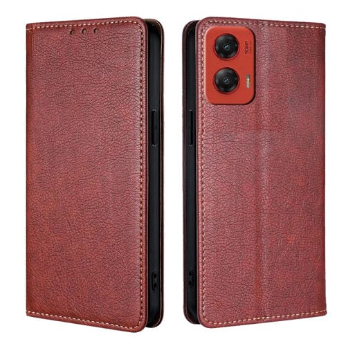 Funda de Cuero Magnética para Motorola Moto G 5G (2024) con Acabado Brillante (Marrón)