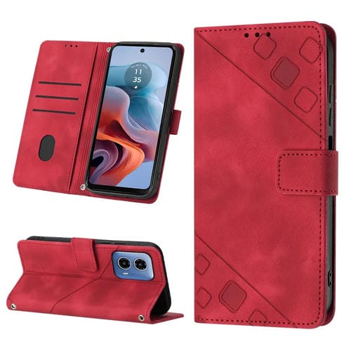 Funda de Cuero para Motorola Moto G34 con Relieve y Sensación de Piel (Rojo)