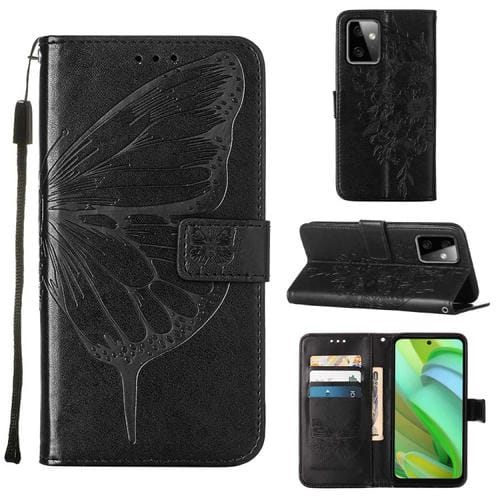 Funda de Cuero para Motorola Moto G Power 2023 con Mariposa en Relieve (Negro)