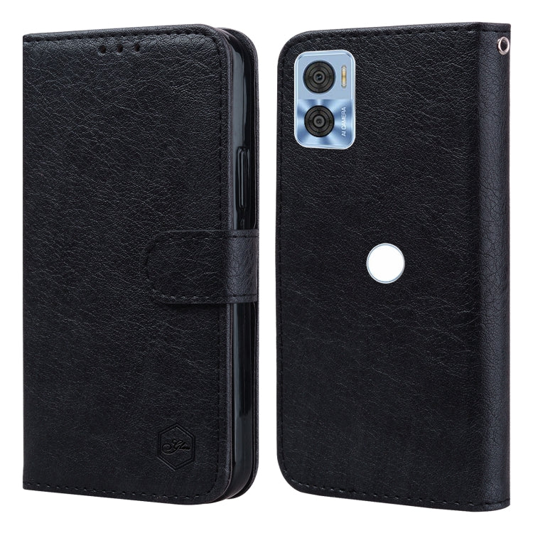 Funda para Motorola Moto E20 E30 E40 PU + TPU Textura de Cuero Aceitoso (Negro)
