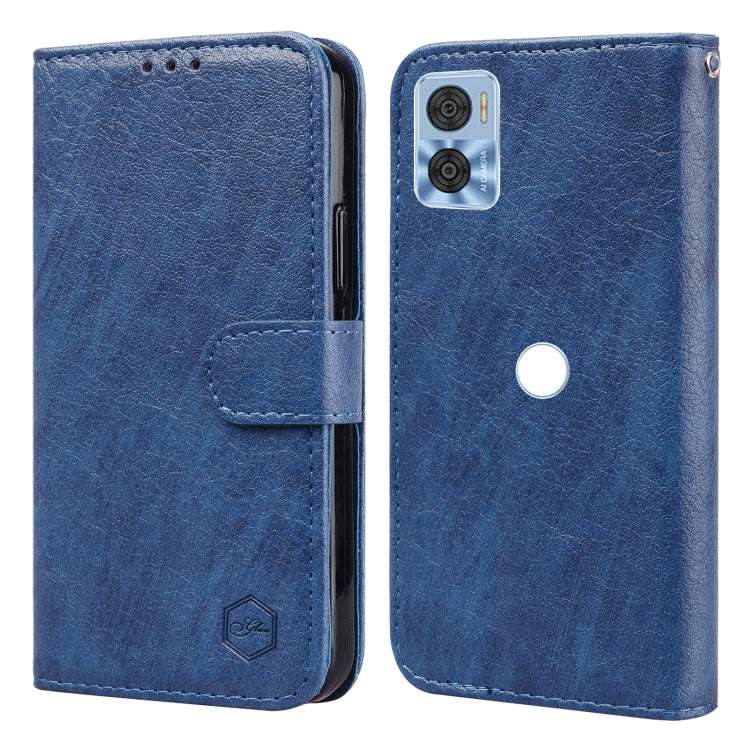 Funda para Motorola Moto G22 PU + TPU con Textura de Cuero Aceitoso (Azul Oscuro)
