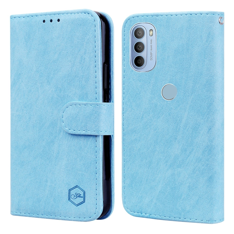 Funda para Motorola Moto G30 G10 G20 PU + TPU Textura Piel Aceitosa (Azul Claro)