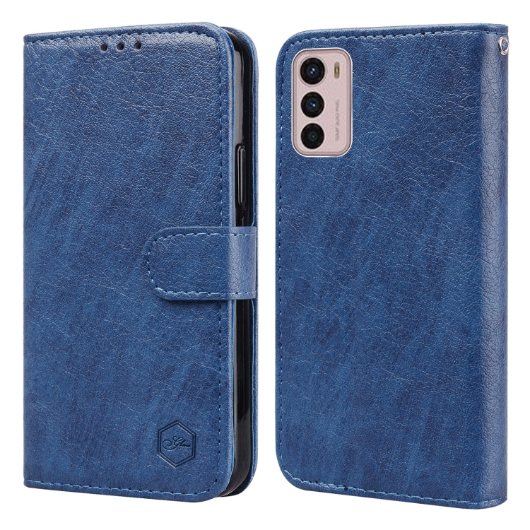 Funda para Motorola Moto G30 G10 G20 textura de cuero aceitoso PU + TPU (Azul Oscuro)