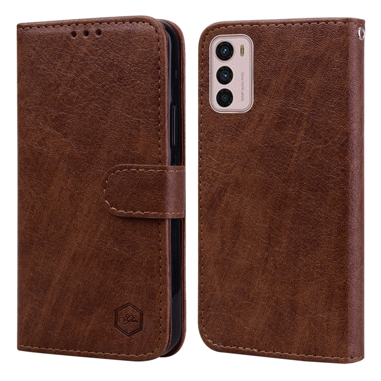 Funda para Motorola Moto G31 / G41 PU + TPU con Textura de Cuero Aceitoso (Marrón)