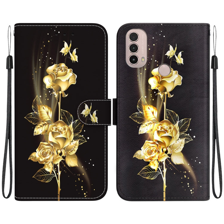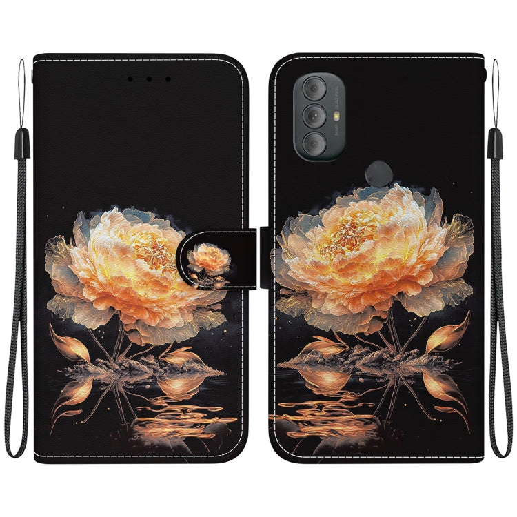 Funda de Cuero Motorola Moto G Power 2022 con Dibujo Coloreado y Textura de Cristal (Peonía Dorada)