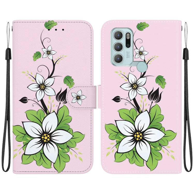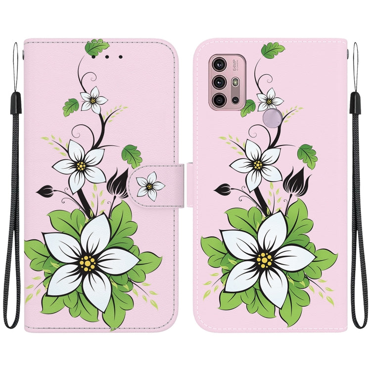 Funda para Motorola Moto G30 / G10 / G20 de Cuero con Dibujo Coloreado y Textura de Cristal (Lirio)