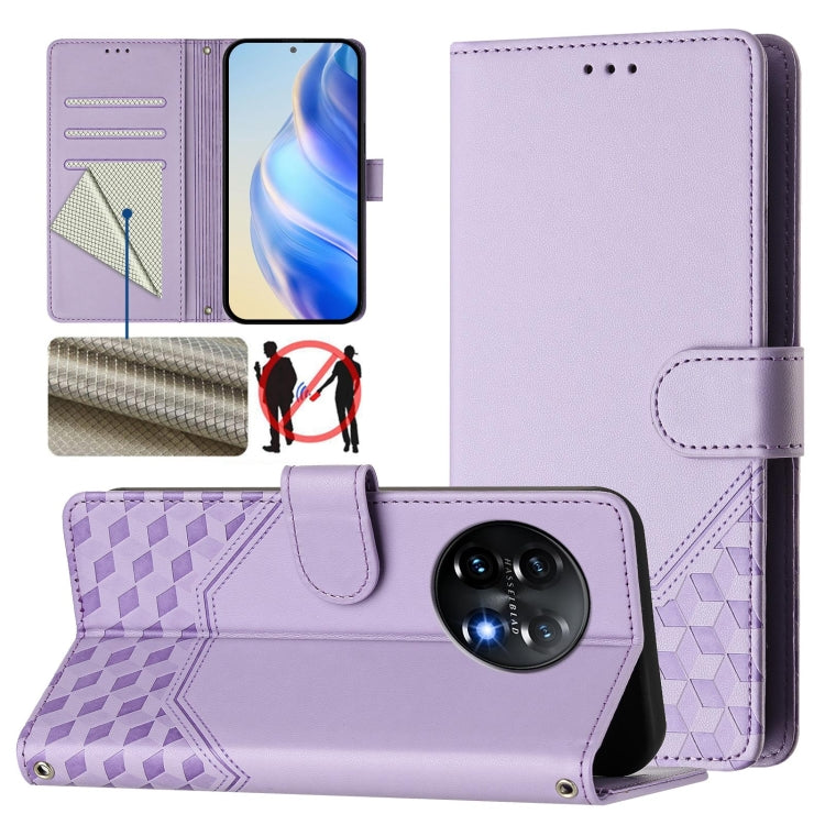 Funda de Cuero Rfid con Relieve en Panal para OnePlus 11 (Morado Claro)