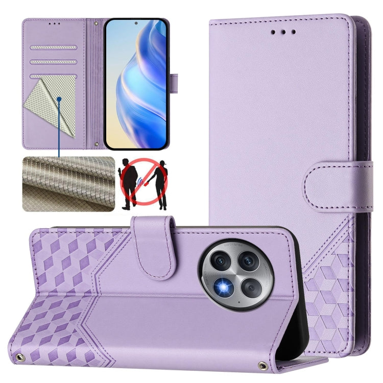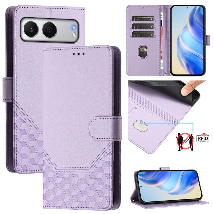 Funda de Cuero Rfid con Relieve de Panal para OnePlus Nord 4 5G (Morado Claro)
