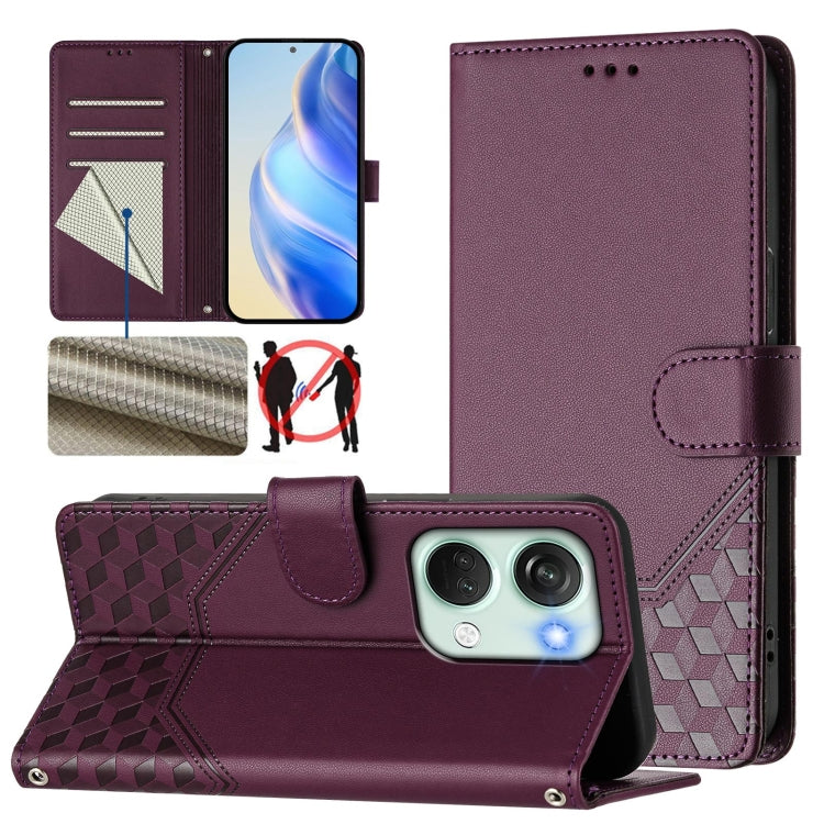 Funda de Cuero Rfid con Relieve en Panal para OnePlus Nord 3/Ace 2V (Violeta)