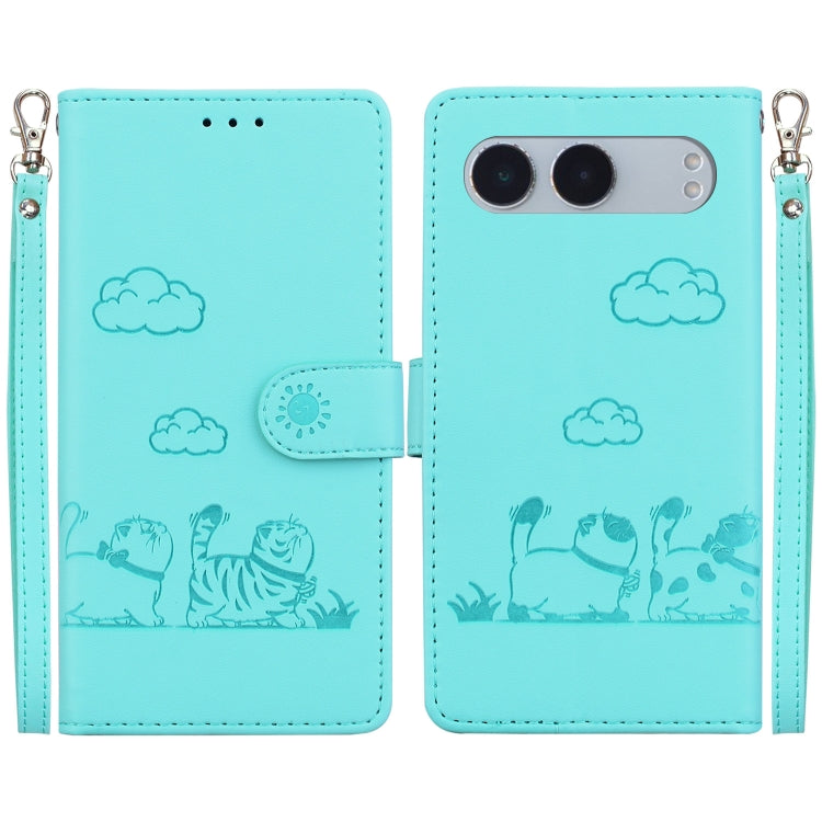 Funda de Cuero Rfid con Diseño de Gatos para OnePlus Nord 4 (Verde)