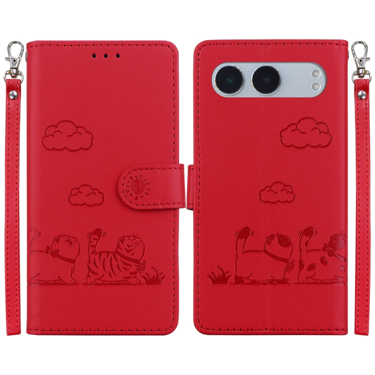 Funda de Cuero Rfid para OnePlus Nord 4 (Rojo) con Diseño de Gatos