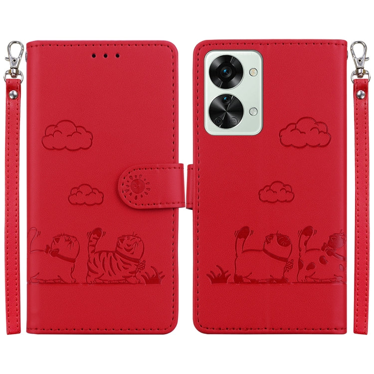 Funda de Cuero Rfid con Diseño de Gatos para OnePlus Nord 3 (Rojo)
