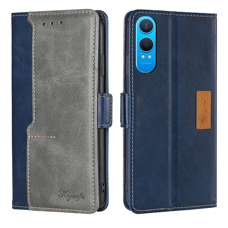 Funda de Cuero con Hebilla Lateral y Color de Contraste para OnePlus Nord Ce 4 Lite 5G (Azul + Gris)