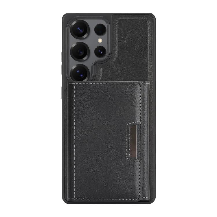 Funda de cuero con tres pliegues y adhesivo lateral para Samsung Galaxy S25 Ultra 5G (negro)
