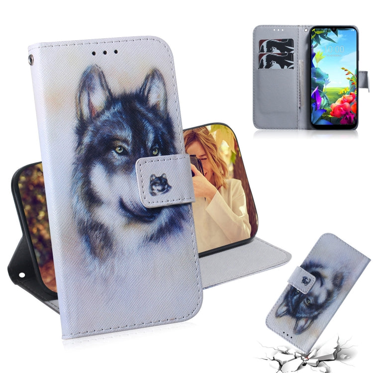 Estuche de Cuero para LG K40S con Tapa Magnética, Soporte, Ranura para Tarjeta y Billetera (White Wolf)