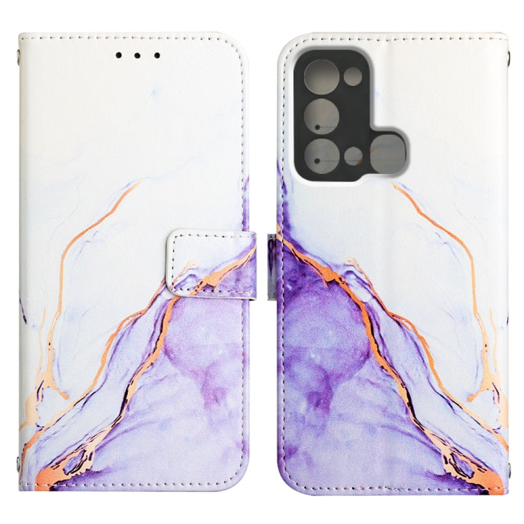 Estuche de Cuero para Itel P38 / S17 / Vision3 Pt003 con Tapa y Patrón de Mármol (Blanco Púrpura)