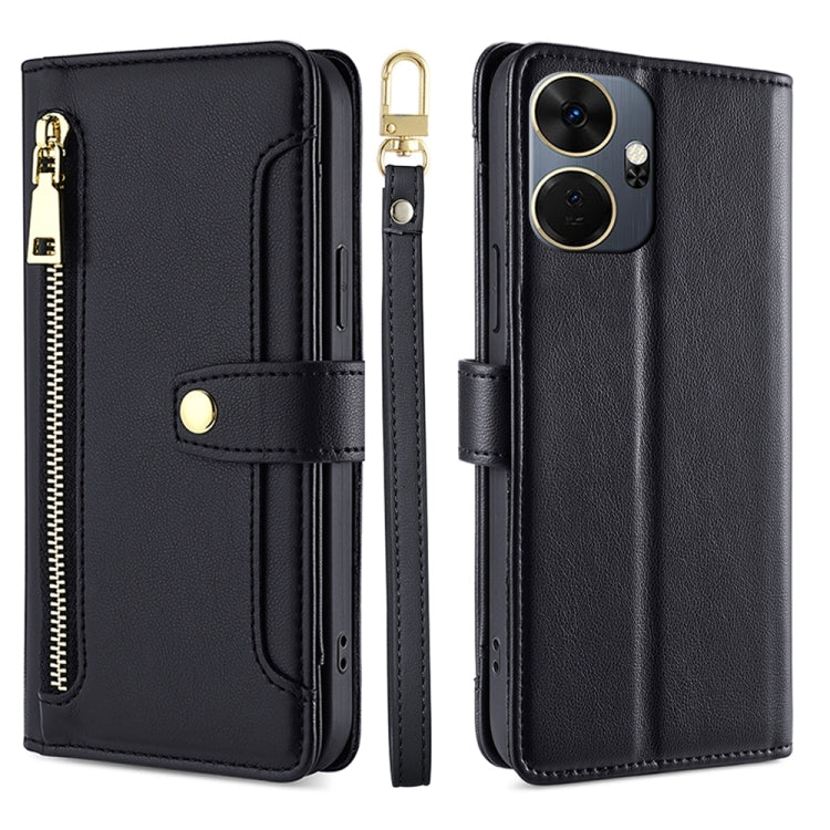 Estuche de Cuero para Itel Rs4 4G con Billetera, Cremallera y Cuerpo Cruzado (Negro)