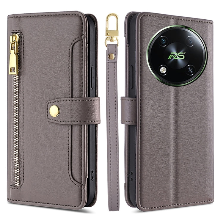 Estuche de Cuero para Itel P55 + 4G con Billetera, Cremallera y Textura de Oveja (Gris)