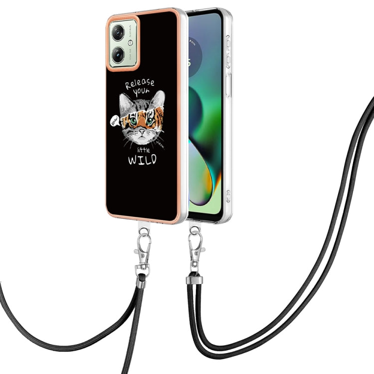 Estuche para Motorola Moto G54 Imd Doble Cara con Galvanoplastia y Cordón (Leopardo)