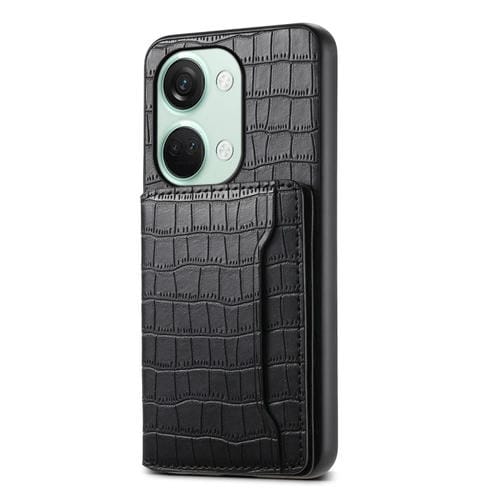 Estuche para OnePlus Ace 2V Denior con Diseño de Bolsa para Tarjetas y Textura de Cocodrilo (Negro)