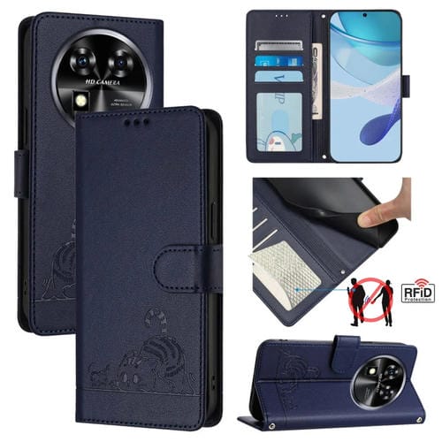 Estuche para Oukitel C36 y C35 Cat Rat de Cuero con RFID, Patrón en Relieve y Cordón (Azul)