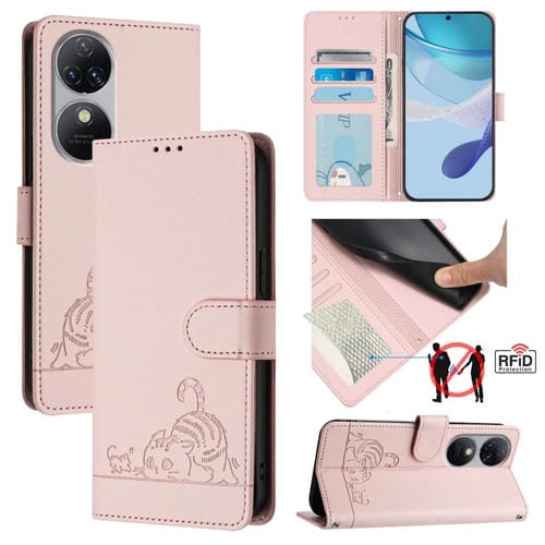 Estuche para Oukitel C33 Cat Rat de Cuero RFID con Patrón en Relieve y Cordón (Rosa)