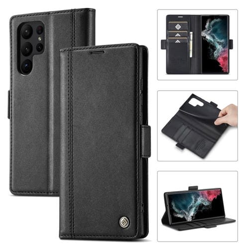 Estuche para Samsung Galaxy S23 Ultra 5G Lc.Imeeke PU + TPU Cuero Sensación Piel (Negro)