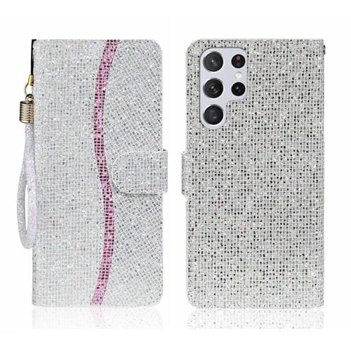 Estuche para Samsung Galaxy S24 Ultra 5G Cuero con Tapa en Polvo con Purpurina (Plateado)