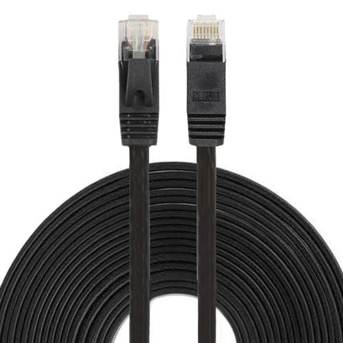 Cable Lan de Red Ethernet Plano Ultrafino Cat6 de 10 Metros Cable de Conexión RJ45 (Negro)