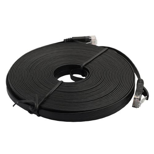 Cable LAN de Red Ethernet Plano Ultrafino Cat6 de 15 Metros con Conector RJ45 (Negro)