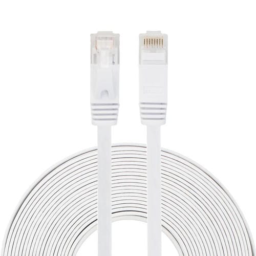 Cable LAN de Red Ethernet Plano Ultrafino Cat6 de 10 Metros con Conector RJ45 (Blanco)