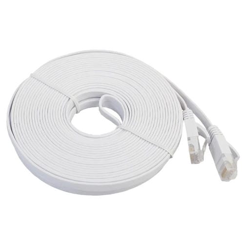 Cable Lan de Red Ethernet Cat6 Plano Ultrafino 15 Metros Cable de Conexión RJ45 (Blanco)