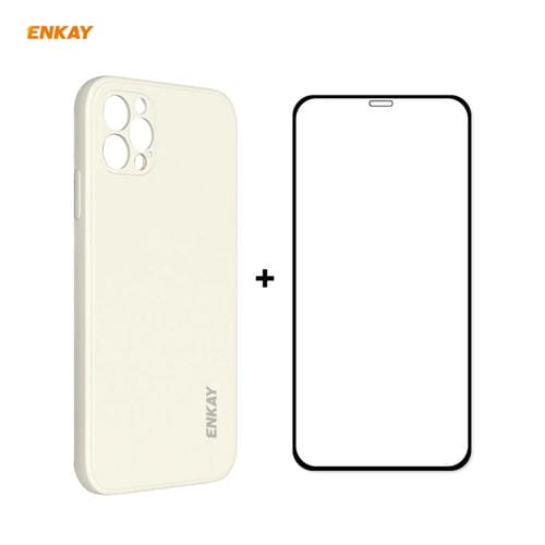 Estuche para iPhone 12 Pro Max Enkay Enk-PC0702 Silicona Líquida + Vidrio Templado (Beige)
