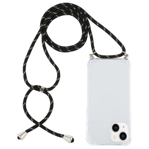Estuche para iPhone 15 TPU Transparente a Prueba de Golpes con Cordón (Oro Negro)