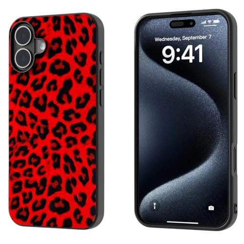 Estuche para iPhone 16 Plus con Estampado de Leopardo y Marco Negro (Leopardo Rojo)