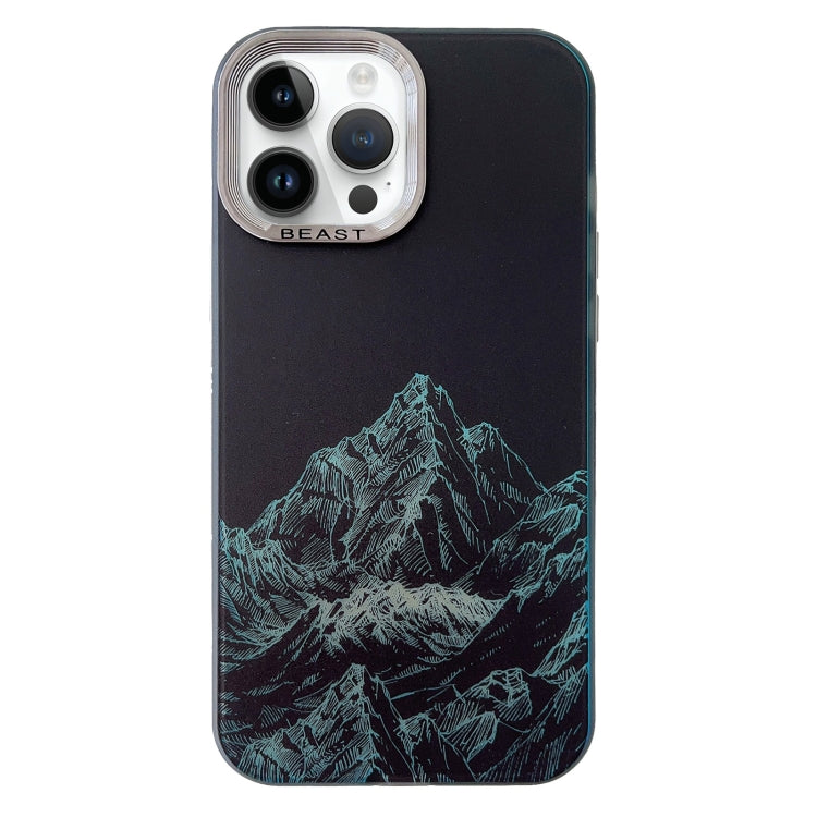 Estuche para Teléfono 2 En 1 iPhone 15 Pro Max Marco Galvanoplastia Aurora (Montañas Nevadas Negras)