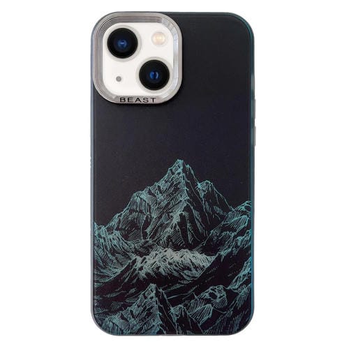 Estuche para Teléfono 2 En 1 iPhone 14 Marco de Galvanoplastia Aurora (Montañas Nevadas Negras)