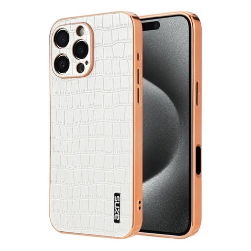 Estuche para Teléfono Azns iPhone 16 Pro Max Textura de Cocodrilo Marco Galvanizado (Blanco)