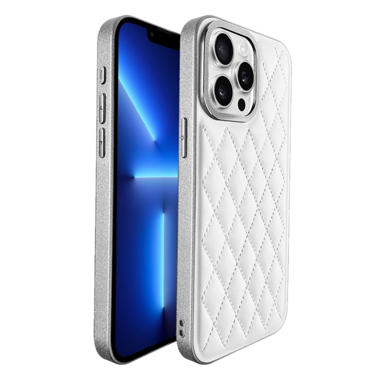 Caja para teléfono iPhone 13 Pro Plaid Series 9D galvanizada (Titanio Plateado)