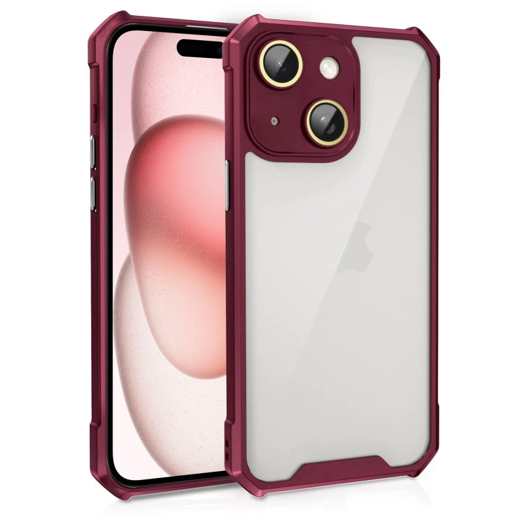 Estuche Acrílico para iPhone 15 Plus a Prueba de Golpes con Película de Vidrio para Lentes (Rojo Vino)