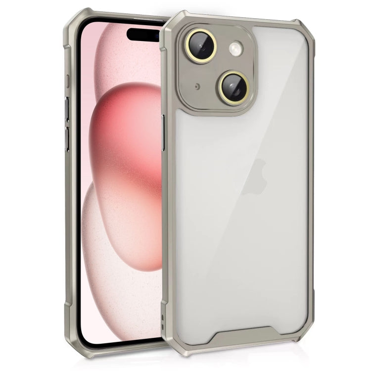 Estuche Acrílico para iPhone 15 Plus a Prueba de Golpes con Película de Vidrio para Lentes (Gris)