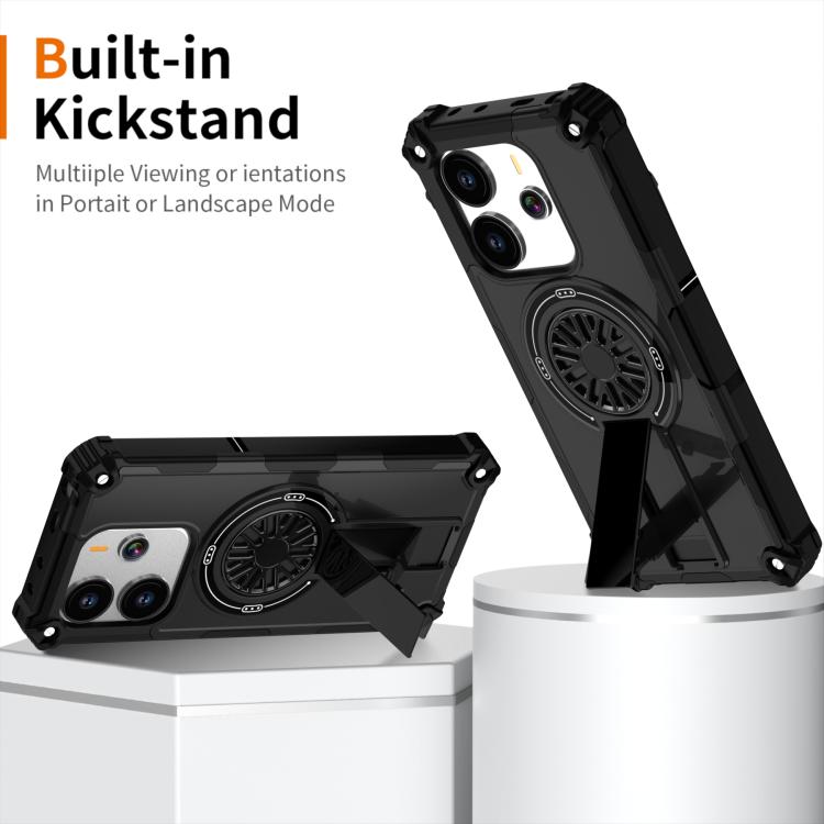 Funda MagSafe para Redmi Note 14 4G de 163,25 mm con soporte metálico y eje a prueba de golpes (negra)