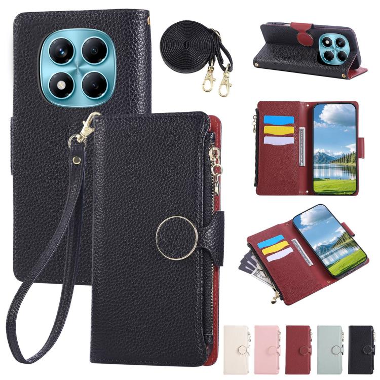 Funda de cuero con hebilla redonda y cremallera para Redmi Note 14 Pro 4G, con correa cruzada (negro)