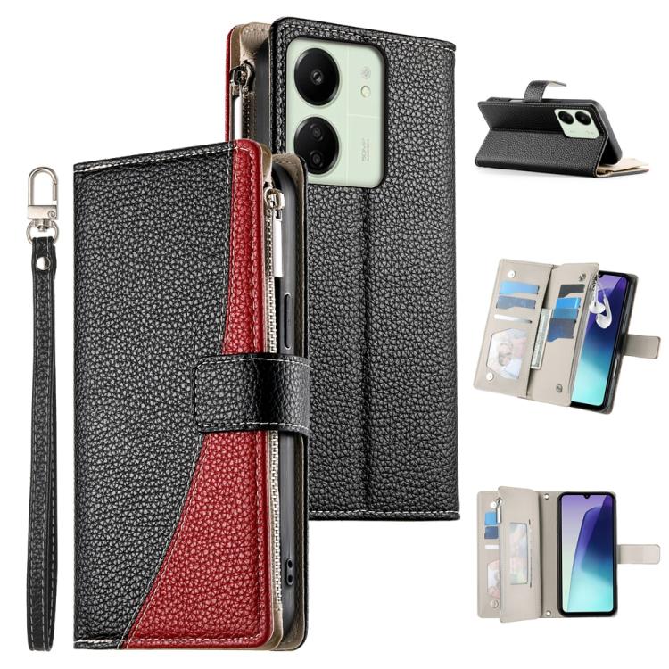 Funda de cuero con cremallera y mĂșltiples tarjetas para Redmi 13C 4G / 5G / 13R / Xiaomi Poco C65 (negro)