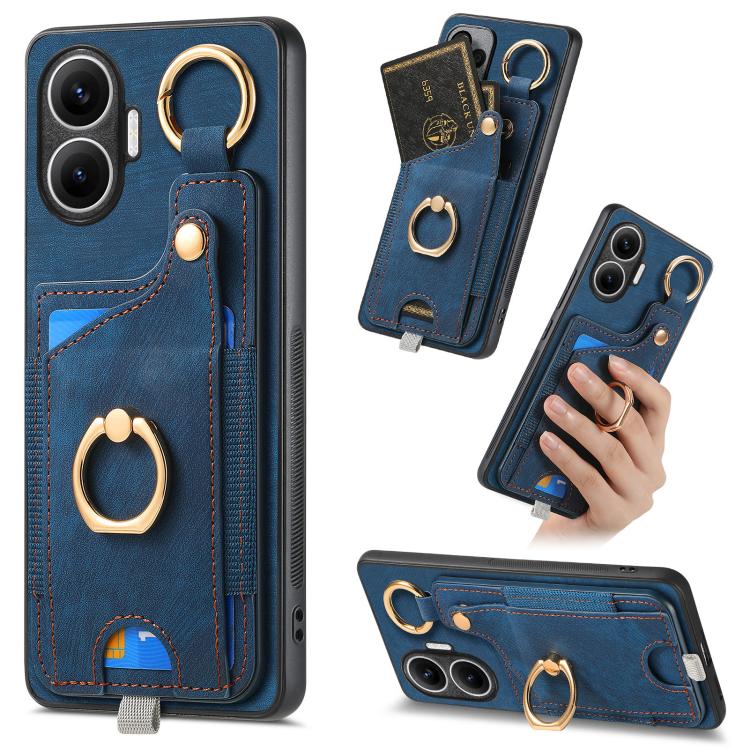 Funda para Redmi Turbo 4 Pro con diseño retro de piel sintética, con anillo y asa para colgar (azul)