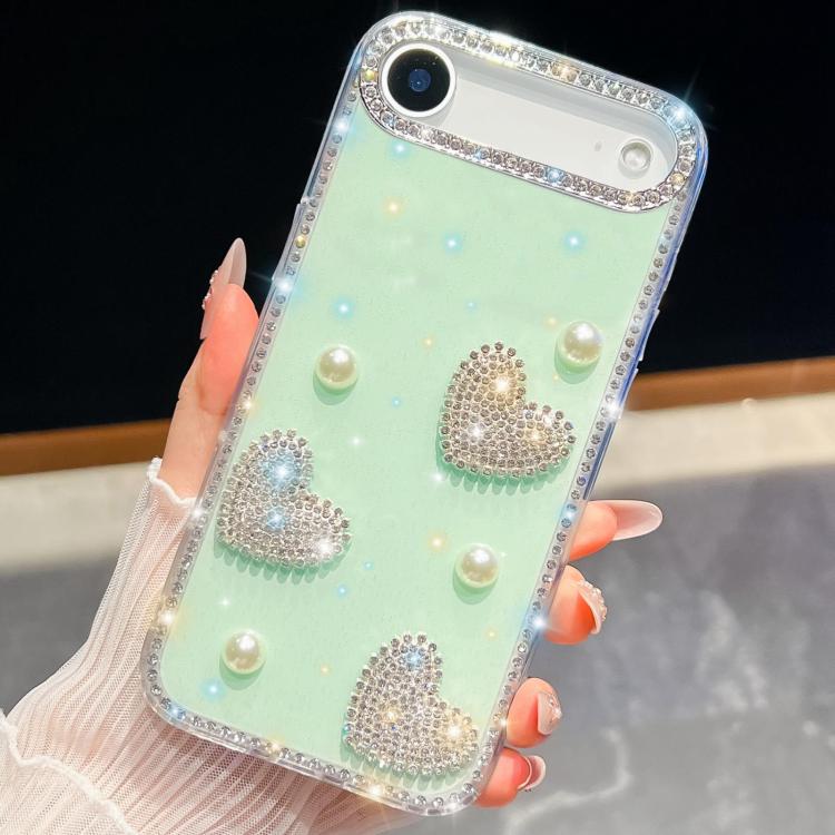 Funda antigolpes con diseño de corazón de perla y purpurina de diamante para iPhone Air (blanca)